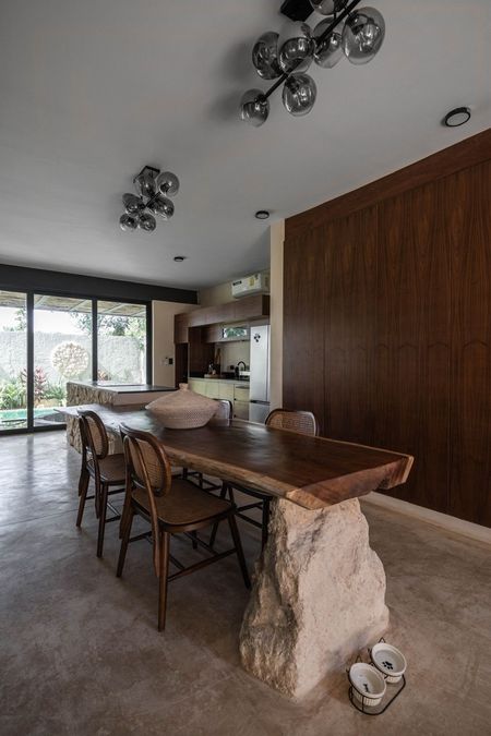 • Desayunador con mesa de parota sobre piedra caliza
