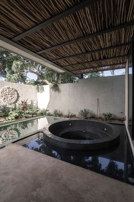 • Terraza techada con vista a jacuzzi y alberca con cascada