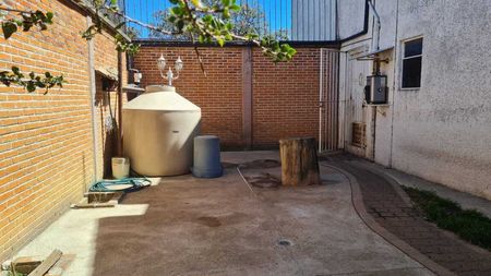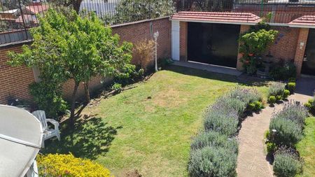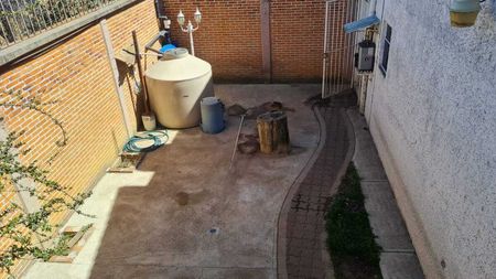 Exterior. jardín frontal con arboles frutales, patio trasero con su cuarto de servicio, bodega con baño completo estacionamiento para para 3 autos descubierto.