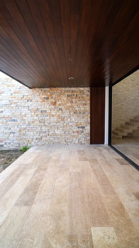 Terraza techada con plafón de madera