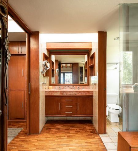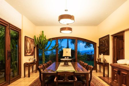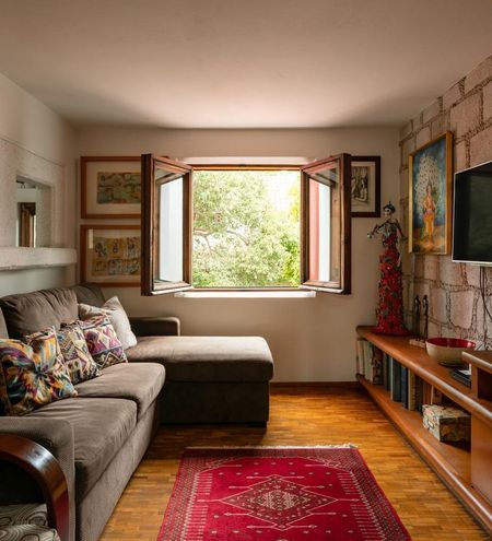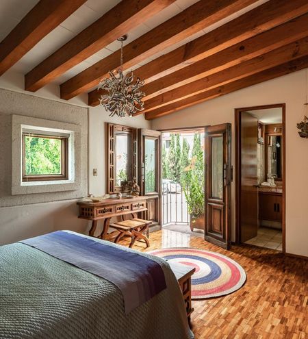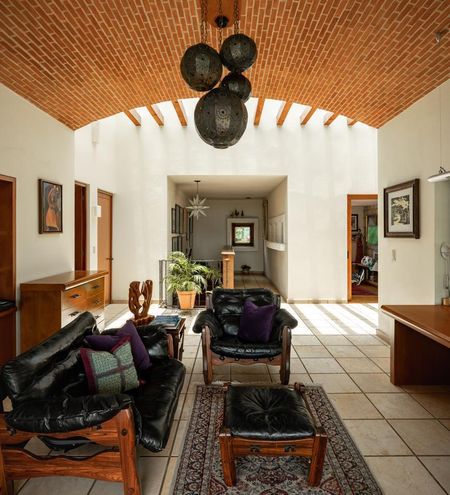 Área de convivencia familiar y de estudio con terraza que da a las habitaciones.