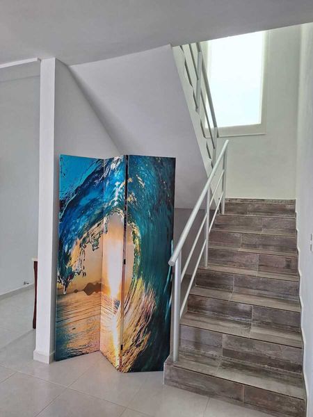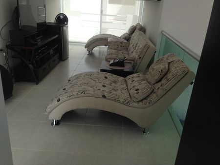 La casa se entrega equipada con ventiladores de techo en cada ambiente, en la sala principal en planta baja como es a doble altura posee dos ventiladores y en la terraza también son dobles los ventiladores; además se entrega con aire acondicionado en cada recámara, todas las puertas y ventanas de cristal tienen cortinas enrollables traslúcidas y sus mosquiteros corredizos.