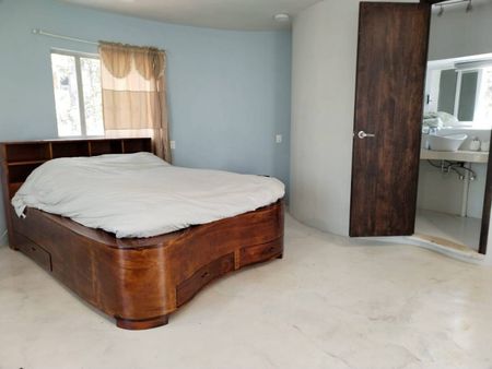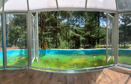 Solárium tiene puertas que abren directo al estanque (o piscina de captación pluvial) que rodean la estructura de la casa.