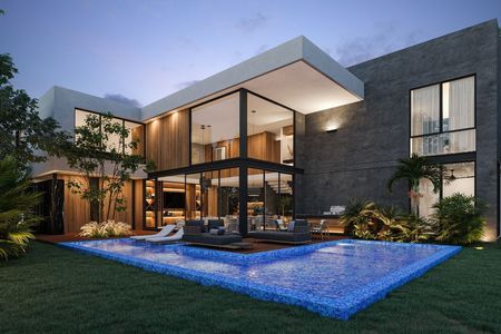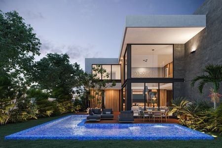 -Granito ó cuarzo en cocina, - Puertas, closets y muebles de baño en madera de Tzalam, -Piscina acabado Diamond Brite con equipo de filtración e iluminación LED, - Sistema de riego automatizado