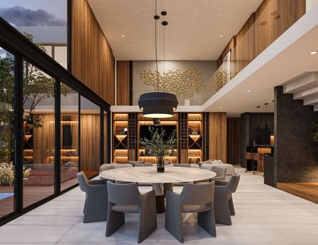 Pisos de mármol, cancelería Eurovent serie 150, meseta de baños en mármol ó granito, grifería Helvex o similar, Puerta principal en madera macisa de Tzalam, mármol y madera de cumaru, escaleras con huellas de madera, contactos marca schnider, terracería preparada para poner jardín