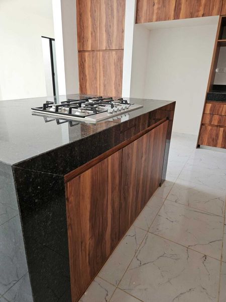 • Carpintería de cocina en MDF tratado, incluyendo gavetas, espacio de alacena