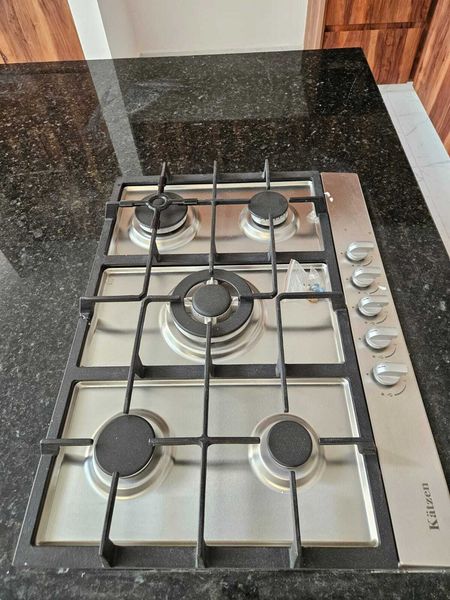 • Parrilla de gas de 5 quemadores y campana instalada en la isla.