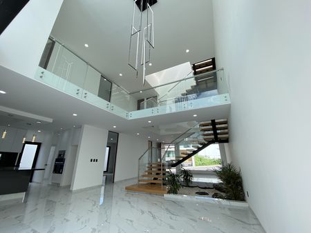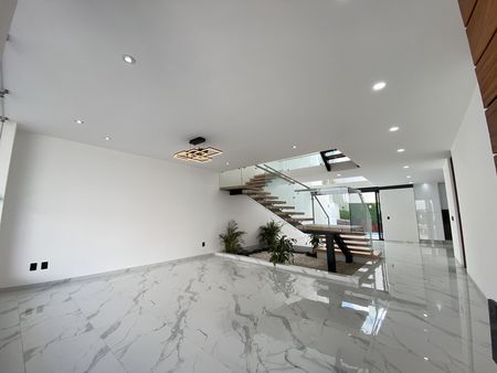 Moderna residencia con espacios amplios, diseño elegante y detalles pensados para disfrutar cada momento en casa. Planta Baja: