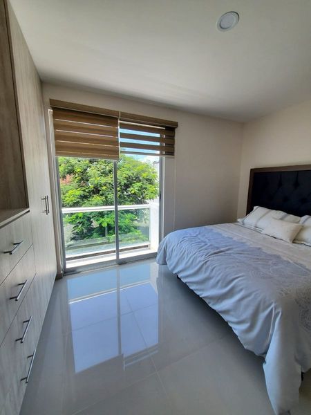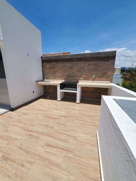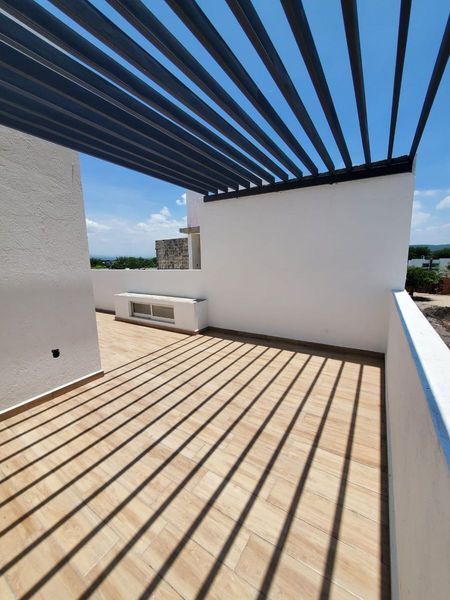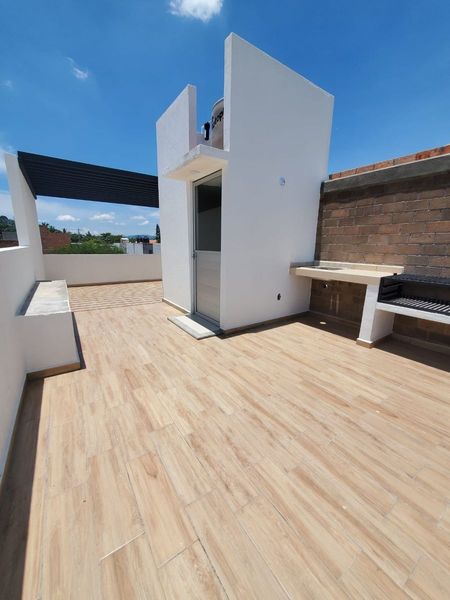 habitaciones, 2 baños completos, cocina integral, área de lavado, terraza para apreciar el bello jardín, roof con espectacular vista con costo extra, 1 cajón de estacionamiento.