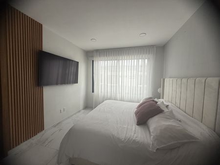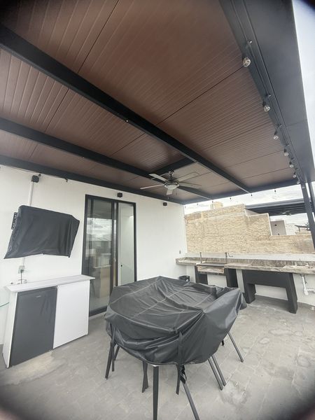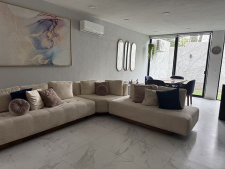 Incluye cortinas translúcida, persianas black out, aire acondicionado en sala y recámara principal