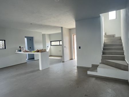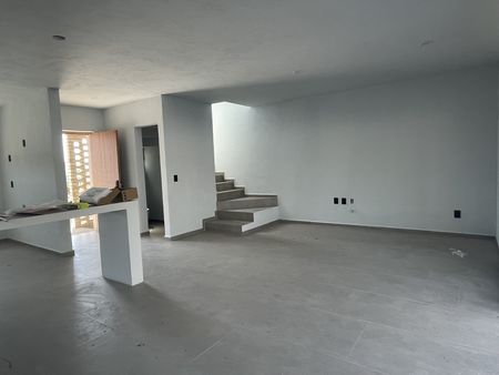 Distribuida en planta baja con estacionamiento para dos autos, pasillos lateral de servicio que termina en el jardín posterior, Terraza techada, sala comedor con ventanal que conecta a la terraza, un espacio de concepto abierto integrando la cocina con una barra desayunador, provista con un baño para visitas.