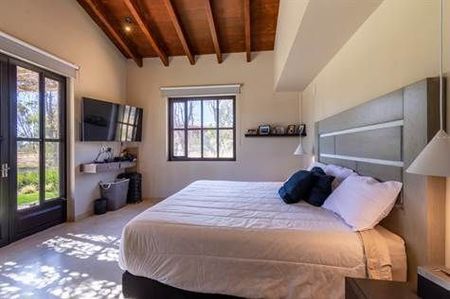 Disfruta del estilo de vida que Viñedos San Lucas en San Miguel de Allende tiene para ofrecer en esta hermosa vivienda. Esta casa fue diseñada para que cada habitación tenga acceso a la luz y las vistas. La experiencia es bastante especial cuando entras en ella, de techos altos con vigas y vistas a la terraza cubierta y al hermoso jardín. Esta casa de un solo nivel cuenta con hoguera y jacuzzi.