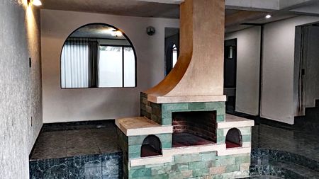 Sala con chimenea, comedor, cocina integral,medio baño, patio y jardín,estudio ,estacionamiento 2 autos,