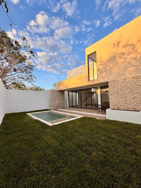 Casa súper ubicada cerca del puente de Temozón y Carretera Mérida-Progreso, tiene 320m2, 3 recámaras, 5 baños, alberca, cuarto de servicio y entrega inmediata, enganche flexible!