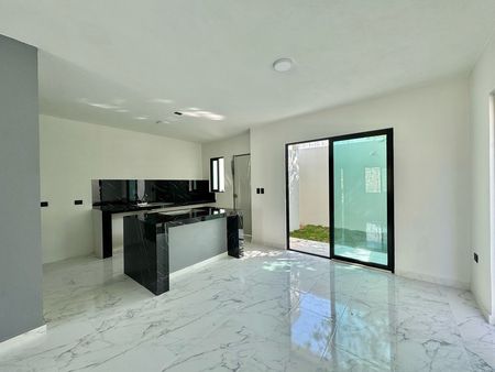 Incluye pisos de loseta con apariencia de mármol, al igual que la barra e isla de la cocina en color negro. La fachada cuenta con losetas tipo duela de madera. Puertas interiores de madera parota, ventanas de aluminio.