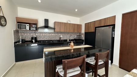 - Cocina totalmente equipada con refrigerador, horno, estufa de gas, horno microondas, cafetera, etc.
