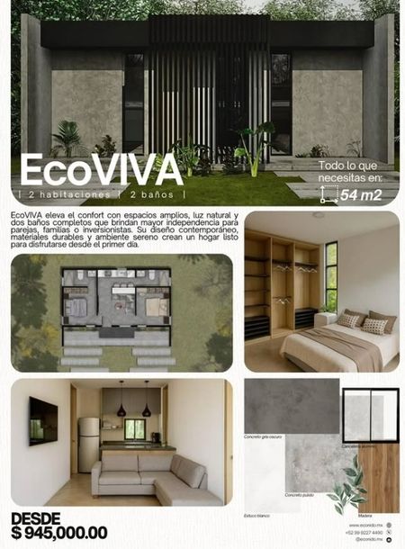 EcoVIVA es una vivienda sustentable de 54 m² que combina diseño contemporáneo, eficiencia espacial y enfoque bioclimático.