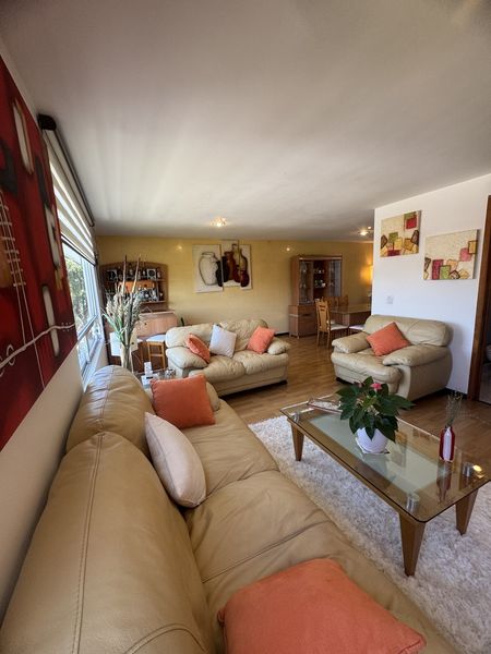 Departamento de amplia estancia comedor, dos habitaciones, dos baños completos, cocina equipada y área de lavado con lavadero y le cabe un centro de lavado doble.