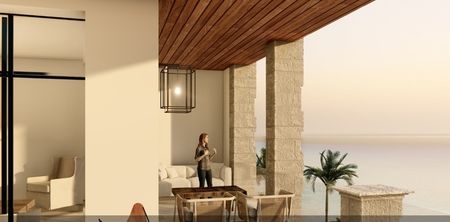 Estos nuevos departamentos frente al mar son amplios y lujosos, con 3 o 4 habitaciones y más de 278 metros cuadrados de espacio. Cuentan con una hermosa cocina moderna con isla, almacenamiento de vino y electrodomésticos premium. La sala se abre a una terraza privada con espectaculares vistas al mar. Este es un lugar encantador para disfrutar de su café de la mañana y desayuno o una copa de vino por la noche. La habitación principal tiene un amplio vestidor y un lujoso baño principal con tocador doble y una bañera profunda. Estos departamentos cuentan con ventanas de piso a techo, techos con vigas a la vista y materiales y acabados naturales de alta calidad. Se ofrecen a la venta sin amueblar pero equipados con aire acondicionado.