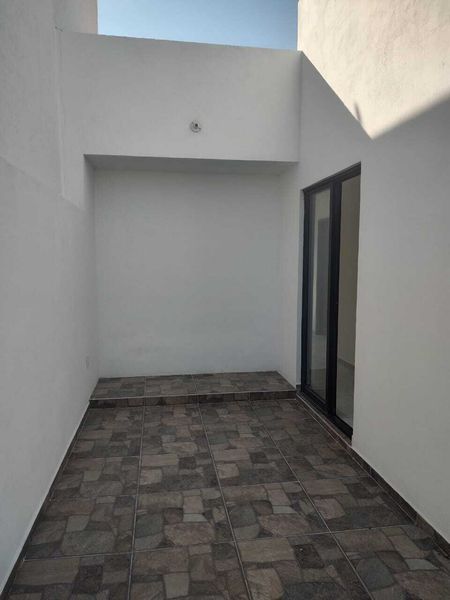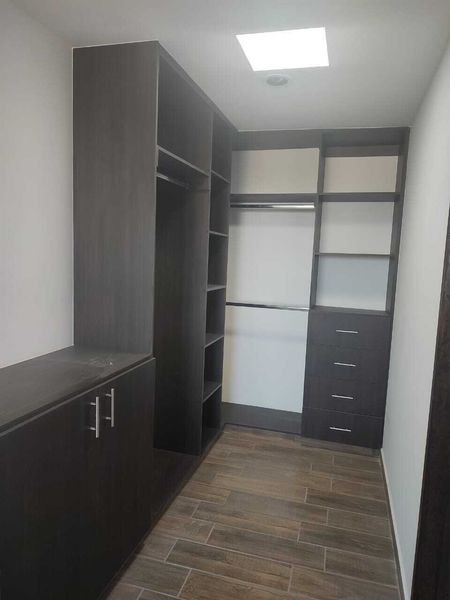 Planta baja: sala comedor, cocina equipada, área de lavado, medio baño, patio, cochera para dos carros, recámara con vestidor en planta baja