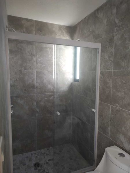LA CUBIERTA ES DE GRANITO Y LOS CANSELES DE VIDRIO TEMPLADO