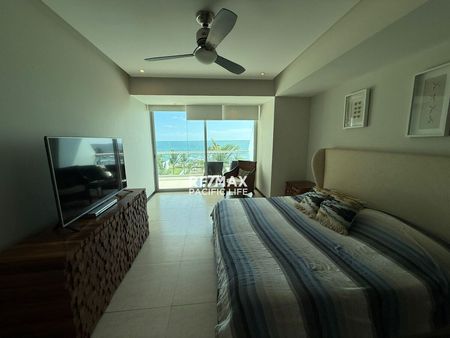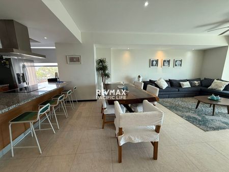 Este exclusivo departamento en renta en Península Mazatlán es el modelo más amplio del desarrollo, con espacios generosos, diseño contemporáneo y una ubicación privilegiada a pie de playa. Detalles que enamoran: