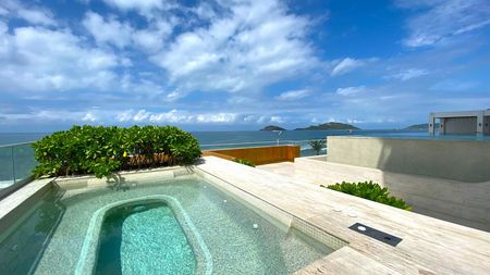 Amenidades: Alberca con vista al mar climatizada, área de asadores, juegos infantiles, gimnasio, lobby, estacionamiento, elevador, spa, salones de usos múltiples, lavandería, fogatero, internet y paneles solares.