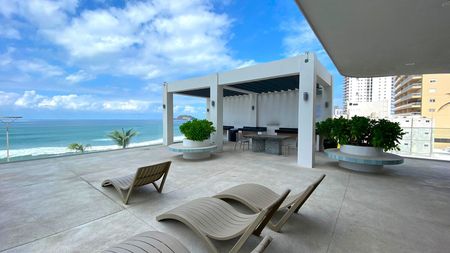 Distribución: 2 recámaras con clóset, 2 baños completos, cuarto de lavado, cocina integral con parrilla y campana, Minisplit, balcón con vista al mar, área de sala y comedor.