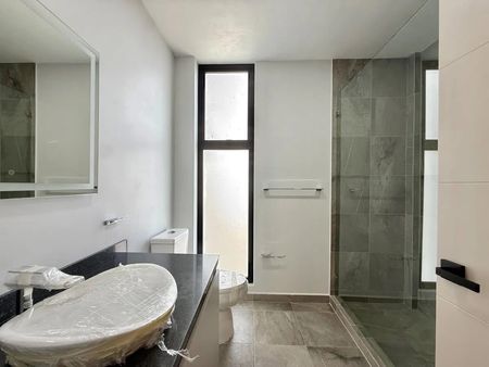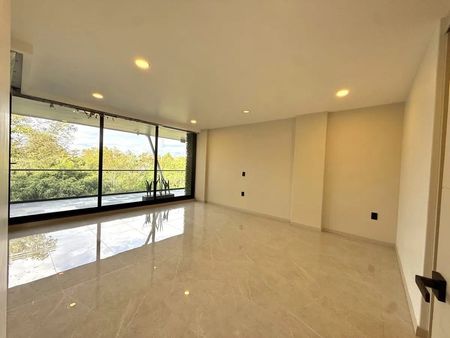 Departamentos nuevos en Renta de 170 m2 en 1er piso con elevador. Cuentan con 3 recámaras con baño y closet, medio baño de visitas, sala - comedor, cocina integral abierta con refrigerador marca teka, microondas, horno. Área de lavado con baño completo, 2 lugares de estacionamiento en bateria y bodega. Los departamentos se entregan con persianas.