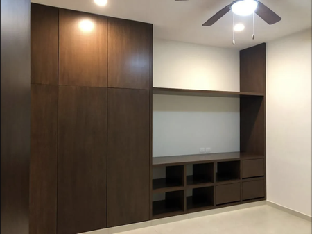 Aires acondicionados y ventiladores en sala, comedor y recámaras