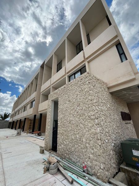 Equipamiento: parrilla eléctrica, calentador eléctrico, carpintería inferior en cocina, closets semi vestidos, cancel fijo de cristal templado, portón eléctrico, pisos 50 x100, granito negro San Gabriel en meseta de cocina, puertas de triplay de tzalam, muros acabado yeso.