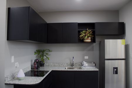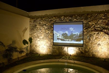 Acabados: madera tzalam, aluminio negro, muros con pintura, concreto pulido y chukum