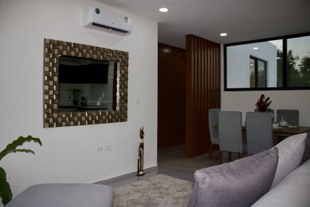 Departamento moderno en planta alta con balcón, acabados premium, distribución funcional y excelente iluminación. Ideal para vivir en una zona tranquila y con alta plusvalía en Dzityá.