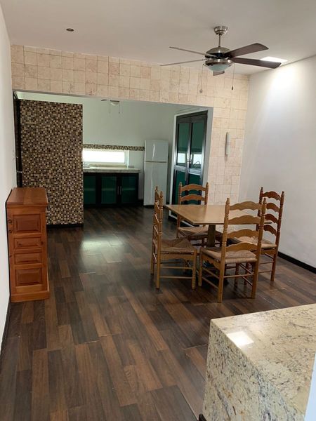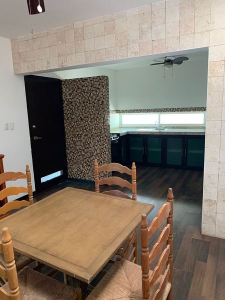 Hermoso Departamento totalmente amueblado, consta de una amplia recámara con baño, cocina equipada con desayunador, área de lavado con lavadora y secadora, lindo jardín con alberca. Ubicado en zona centrica de la Cd. de Mérida.