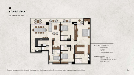 * SANTA ANA 215.5 m2 3 recámaras + Estudio + 5 baños + Cuarto de servicio
