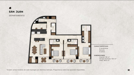* SAN JUAN 180.5 m2 3 recámaras + Estudio + 4 baños