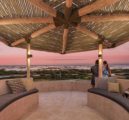 Ofrece una vista al mar y al laguna, brindando una sensación de tranquilidad y paz al ambiente.