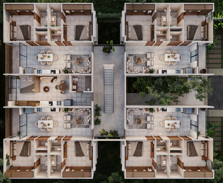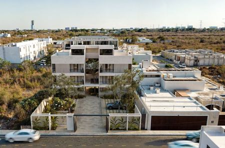 Privada integrada por 15 departamentos en régimen de condominio vertical, distribuidas en 3 niveles, 12 de 2 recámaras y 3 de 1 recámara. Ubicados en Temozón Nte., una de las zonas con mayor crecimiento y plusvalía de Mérida.