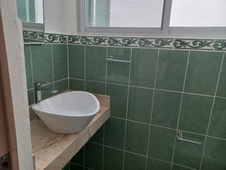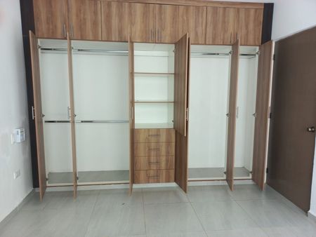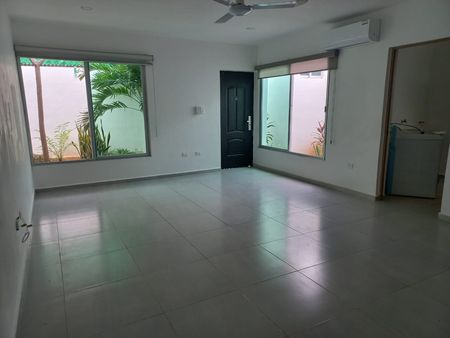DEPARTAMENTO SIN AMUEBLAR,Sala-Comedor, 2 recamaras cocina, con Refrigerador, estufa campana y cocina integral ,un baño completo y un medio baño, cuarto de lavado con lavadora, aires acondicionados, ventiladores persianas, estacionamiento techado para un auto, limpieza de áreas comunes,jardinero, recolección de basura,