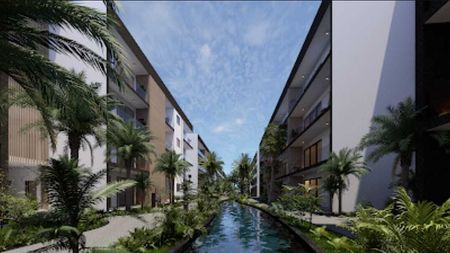 Descubre el equilibrio perfecto entre lujo y naturaleza en el Modelo AGNI de OM Apartments, ubicado en el prestigioso residencial Lagos del Sol en Cancún.