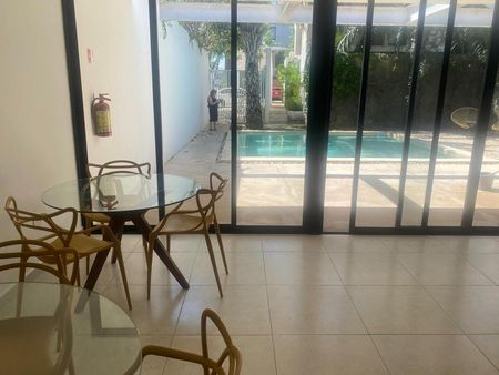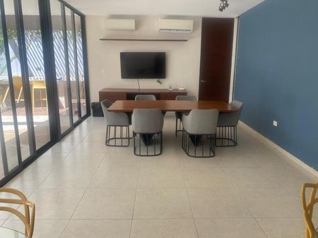 Departamento en Venta dentro de Privada con área social, piscina, salón de usos múltiples y asador. El departamento tiene full equipamiento consta de 2 recámaras completamente equipadas con closets de excelente calidad, ventiladores de techo, climas, persianas, 2 baños completos con fijos de cristal, sala comedor amplios, con clima y ventiladores de techo. Cocina abierta con gavetas, boiller, área de lavanderia. Por estar en planta baja tiene área de patio ideal para personalizarlo con un jacuzzi, pergola y área de asador.