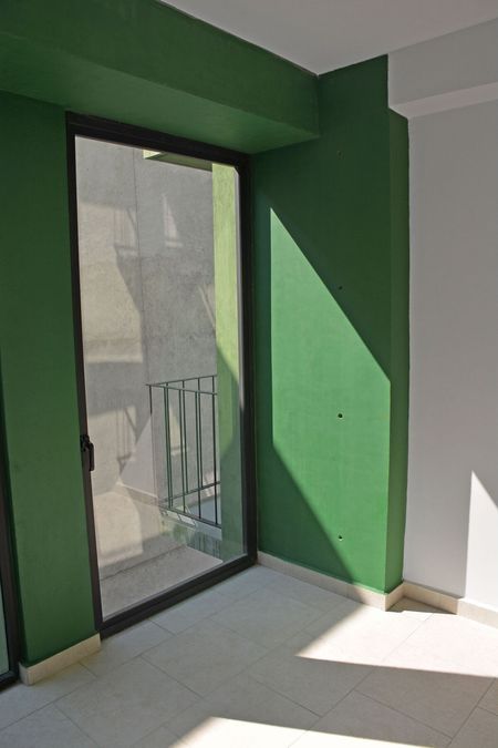 Proyecto diseñado en concreto aparente pigmentado en color verde, acabados de excelente calidad, espacios amplios, iluminado y con vistas exteriores e interiores con orientación sur y norte.