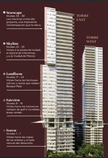 El Desarrollo consta de 2 torres, 110 departamentos, cada uno distribuido en 38 niveles.