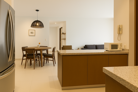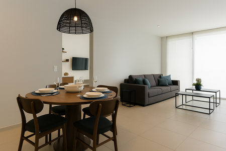 Departamento equipado con muebles en sala, comedor, recamaras y cocina, chapa de seguridad en