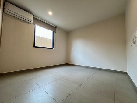 Ubicado en planta baja, este moderno departamento ofrece un amplio espacio interior y una amplia terraza, ideal para disfrutar de momentos al aire libre. Cuenta con una recámara principal con baño completo, un estudio o área de TV, sala, comedor y cocina equipada. Además, dispone de ½ baño adicional, área de lavado, bodega y 1 cajón de estacionamiento.