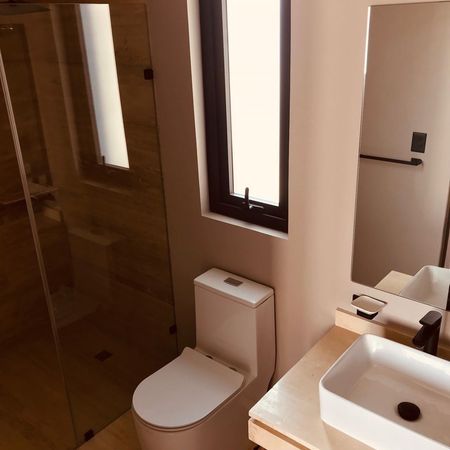• 2 baños completos con acabados de mármol, regaderas con cancelería de cristal templado y un diseño contemporáneo.