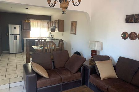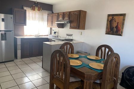 Ubicado en planta alta, equipado para una persona, de 90 m2 de construcción y 180 m2 de terreno, consta de sala comedor, cocina, una recámara con baño completo, 2 closets, lavandería techada, terraza con asador y mesa de jardín.