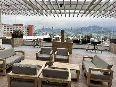 Departamento en renta con hermosas vistas de la cuidad y del Paseo Santa Lucia. Totalmente equipado con persianas blackout, canceles de cristal templado, closets y roperias, minisplits, cocina con cubierta de cuarzo, electrodomesticos. Ademas dos cajones de estacionamiento en el mismo nivel . Precio incluye cuota de mantenimiento. Puede ser amueblado en $30,500.