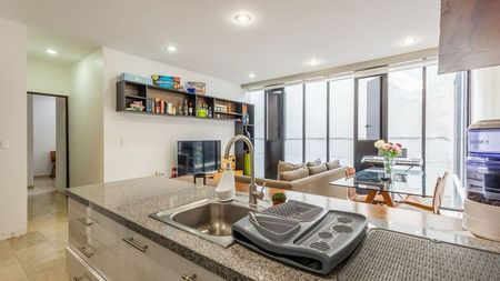 Moderno departamento en Venta ( Con muebles como estas las fotos)en VistaHermosa Cuajimalpa tiene 70 metros 1 recamara con vestidor 2 baños completos techos altos puerta de seguridad 2 estacionamientos Bodega Vigilancia Roof Garden común.