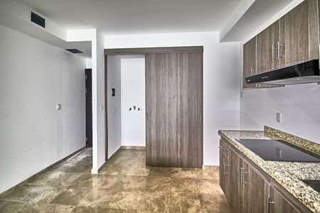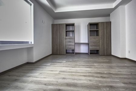 Departamento con sala, cocina integral, comedor, recámara principal con vestidor y baño, recámara secundaria con baño y closet y dos cajones de estacionamiento.